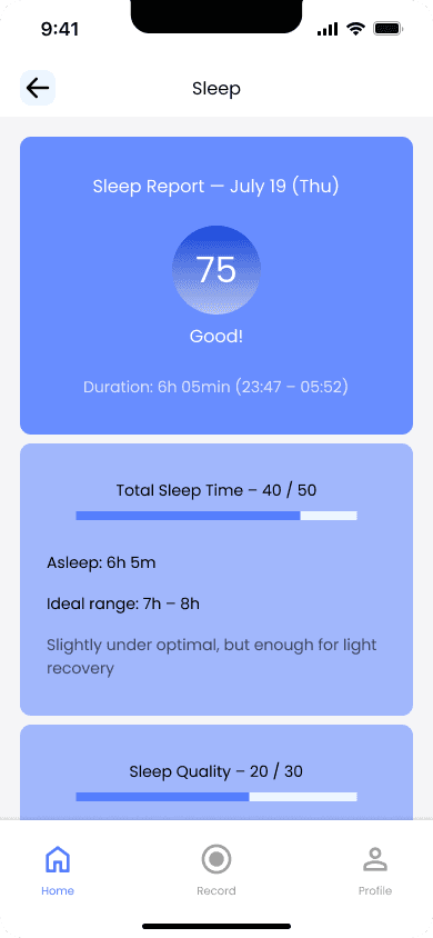Introduced clear visual comparisons and a daily sleep score to support faster understanding.