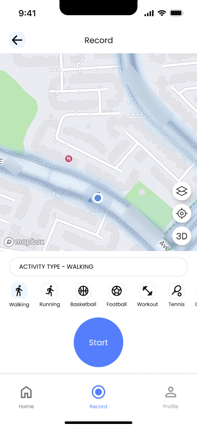 Designed a streamlined workout flow with clear steps: select activity, start tracking, view live stats, and review a simple summary after completion.