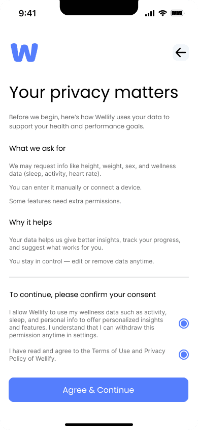 Working on Wellify focused my attention on clarity, consistency, and confidence across complex, multi-feature products.